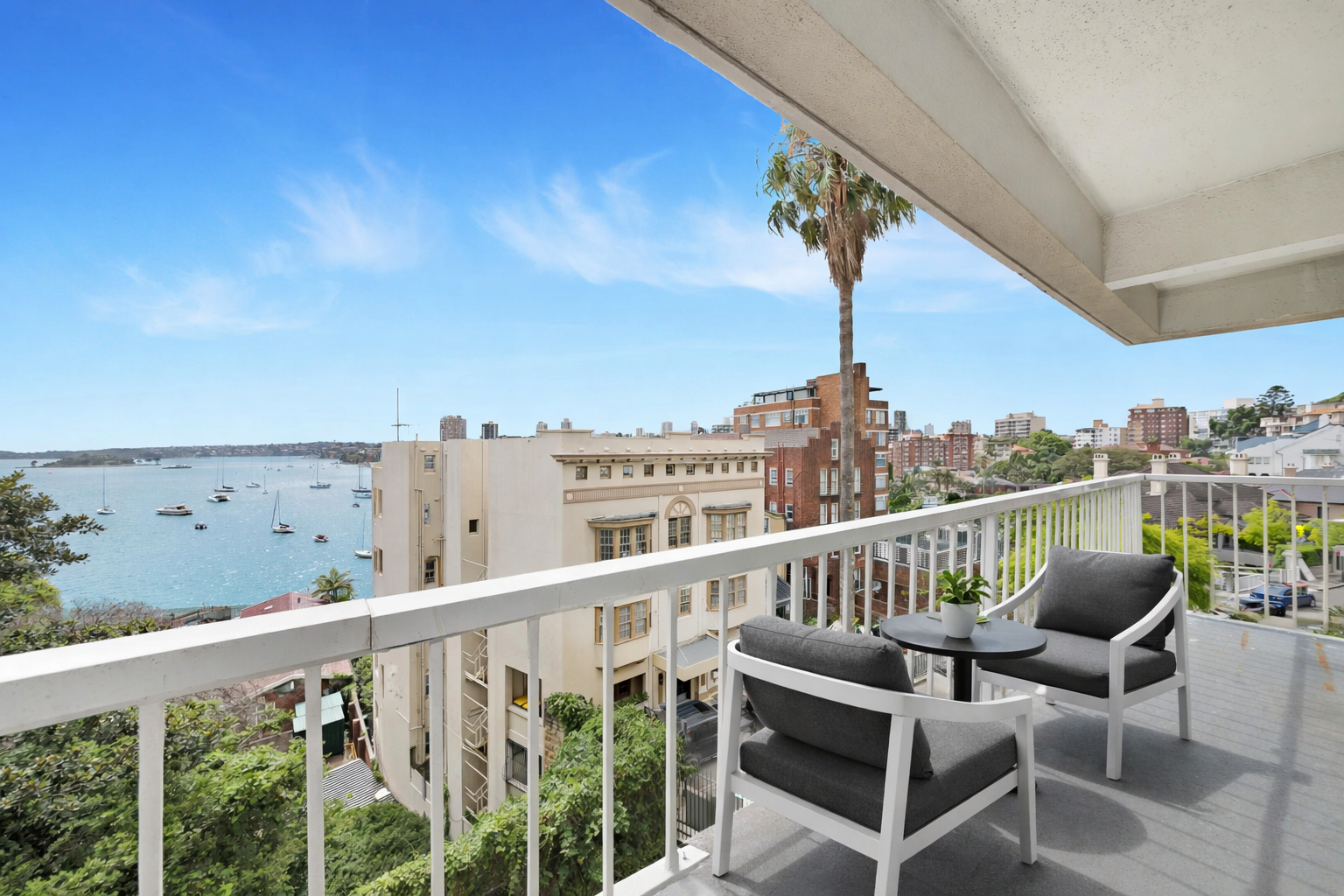 Privately positioned at the peaceful rear of the prestigious Macleay Gardens, this light-filled apartment captures uninterrupted azure views across the sparkling waters of Elizabeth Bay. Framed by expansive windows and opening to a full-width balcony, the residence offers a tranquil retreat in one of Potts Point's most tightly held harbour-side enclaves. Bathed in natural light and enjoying whisper-quiet surroundings, the apartment combines space, privacy and an effortless indoor-outdoor connection to the harbour panorama. The open-plan living and dining area flows seamlessly to the balcony, creating an inviting setting to relax or entertain while taking in the ever-changing harbour outlook. The well-proportioned bedroom enjoys district views, while the separate kitchen provides ample storage and functionality. Floating timber floors and neutral tones enhance the sense of calm throughout the interiors. Set within a secure, gated building surrounded by immaculate landscaped gardens, residents enjoy lift access, secure parking and shared laundry facilities. Positioned just moments from Macleay Street's vibrant café and dining precinct, with Woolworths, boutique shopping and harbourfront walks all within easy reach, this is a rare opportunity to secure a serene harbour-view apartment in an iconic Potts Point address.