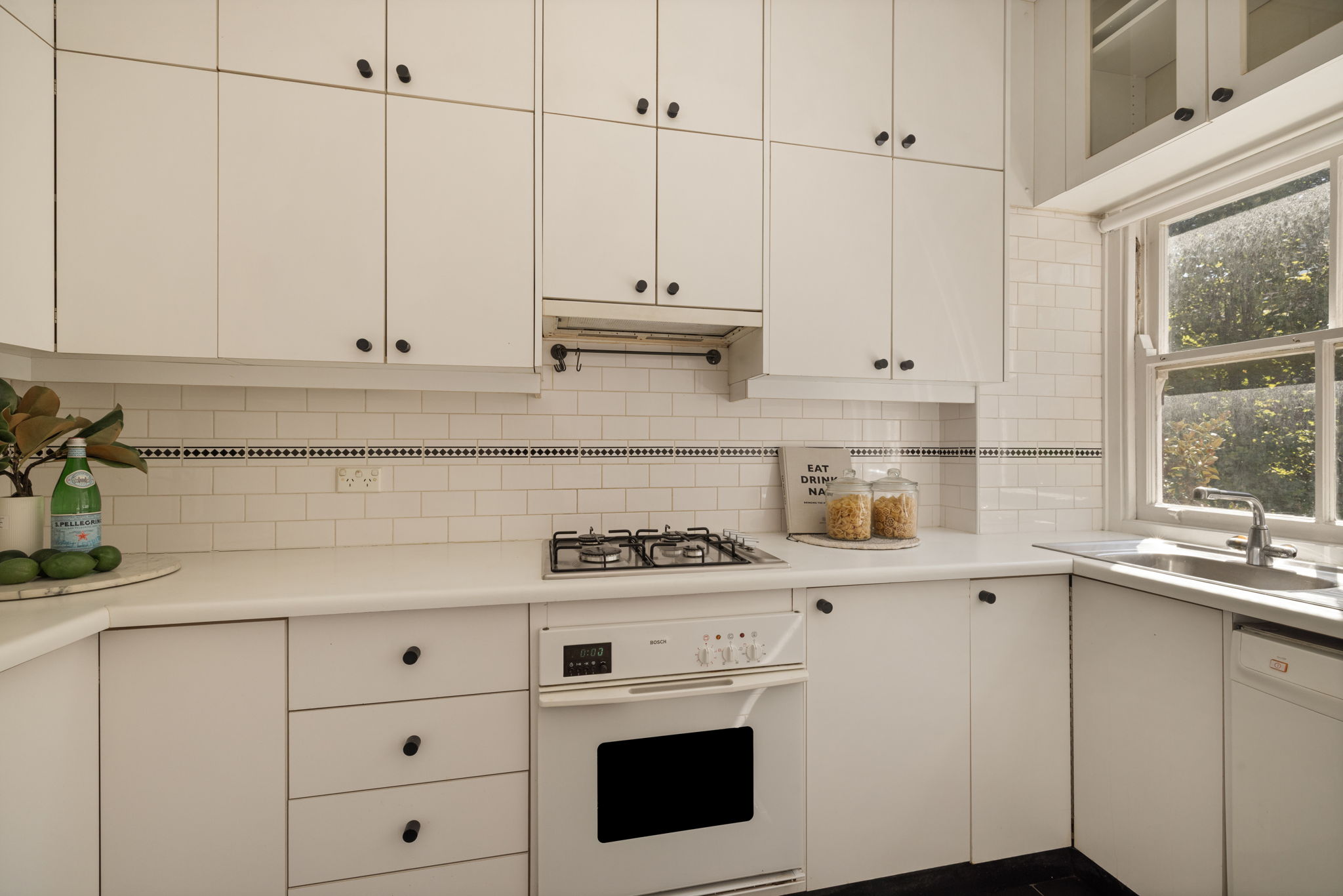 - Neat and tidy gas kitchen features dishwasher