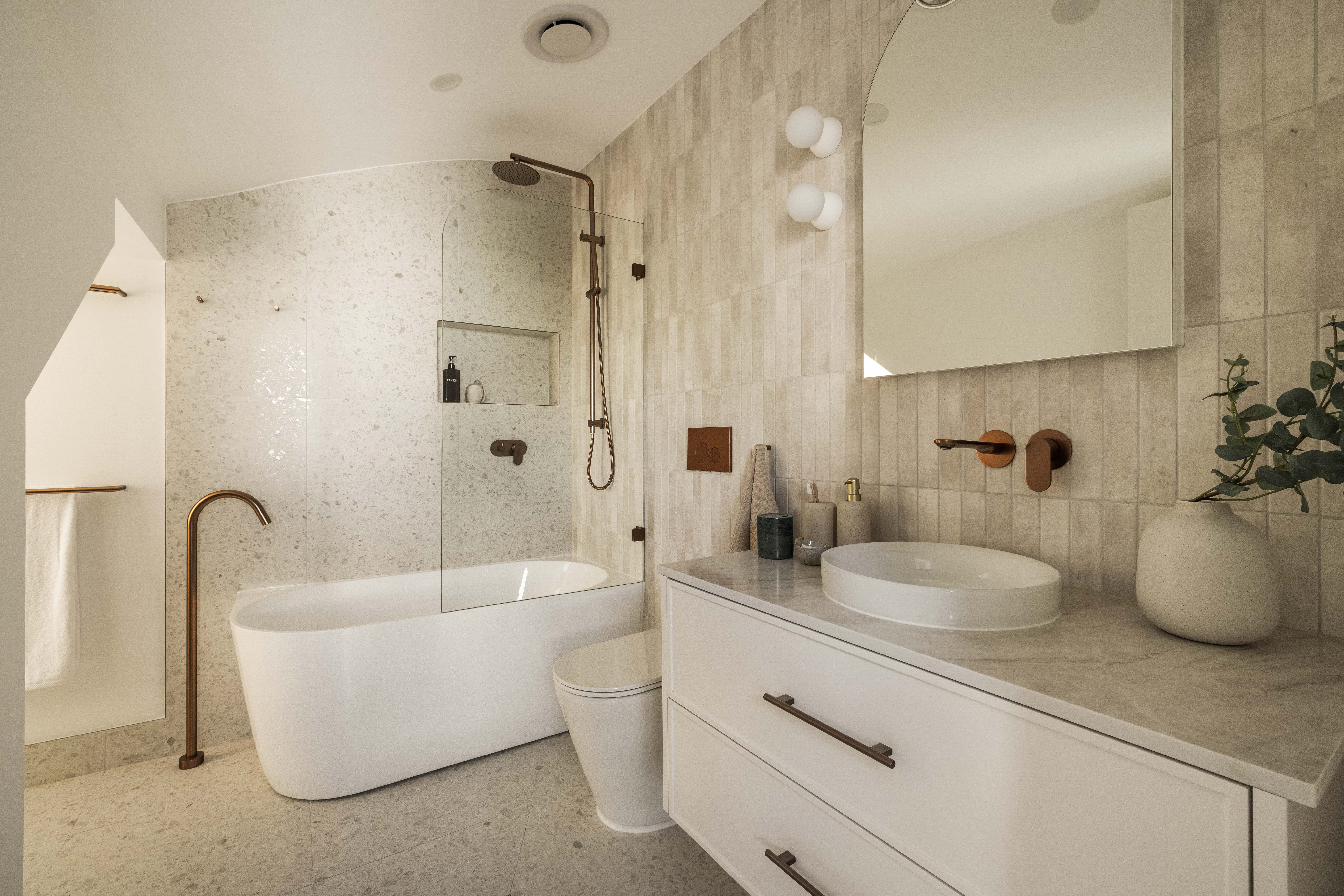 - Stone kitchen benchtops, Fisher & Payel appl.