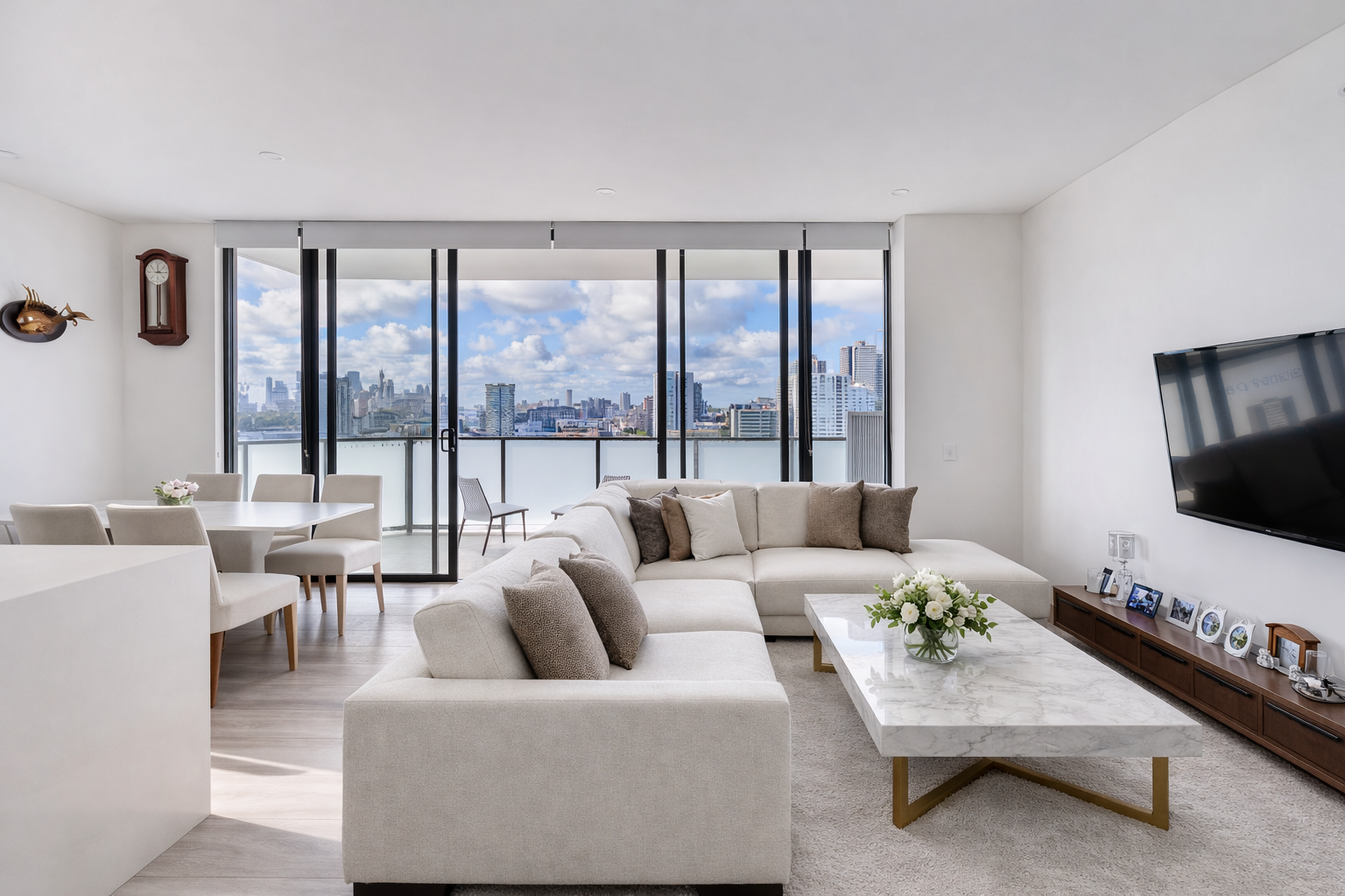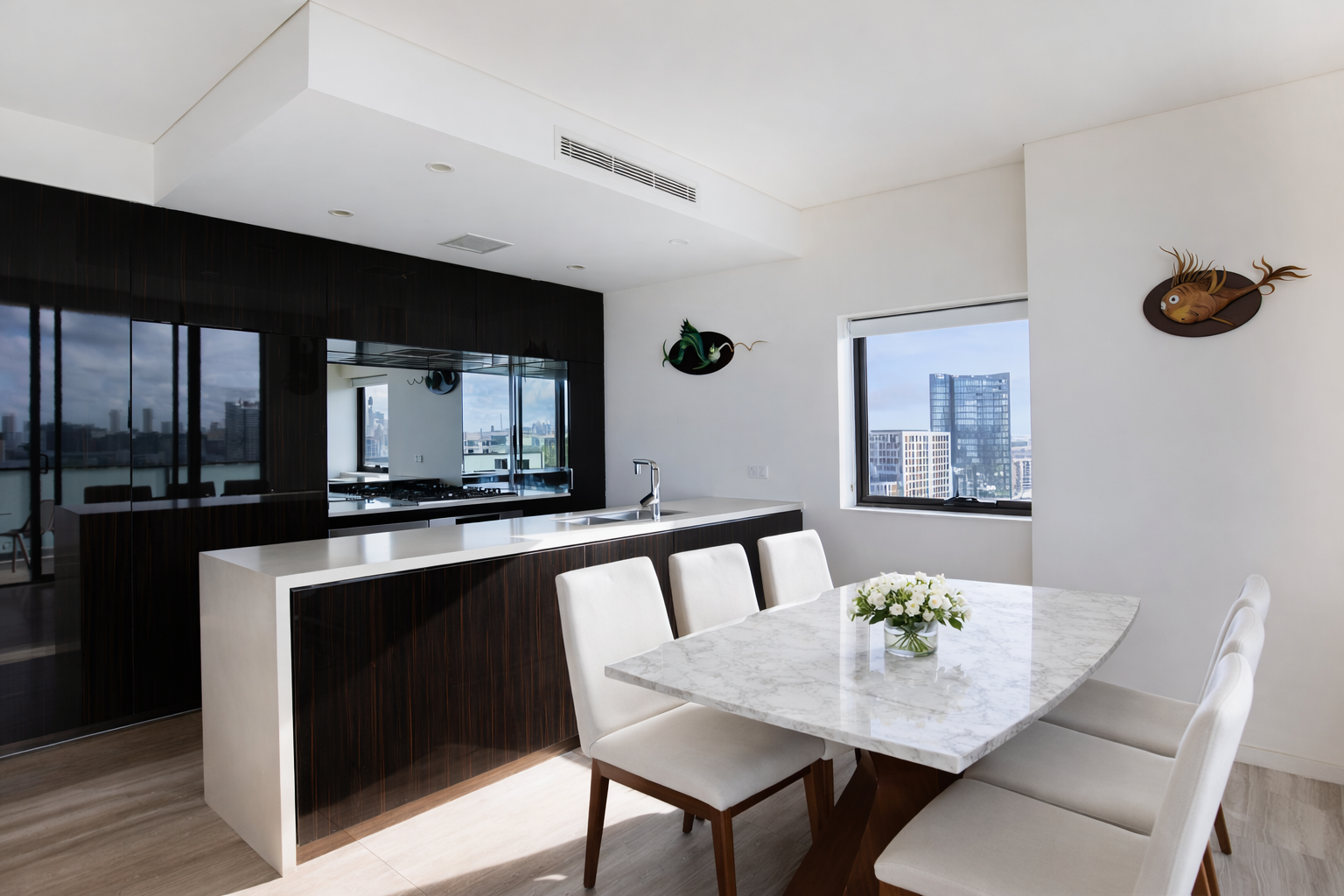 - Expansive penthouse with uninterrupted panoramic city skyline views