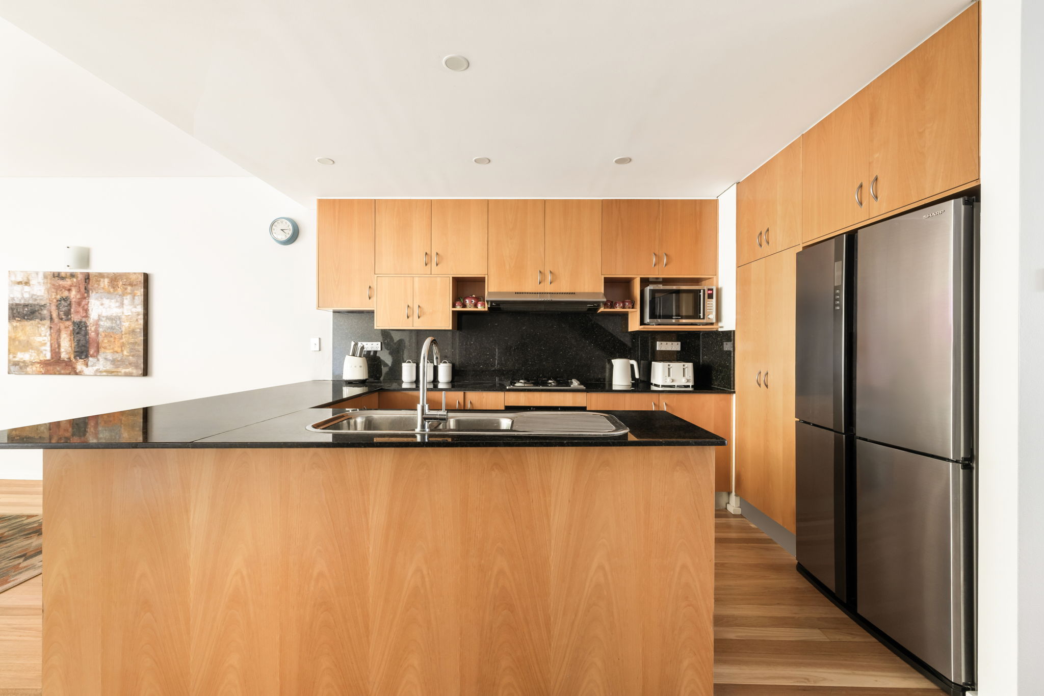 - Modern granite kitchen with a Smeg gas appliance