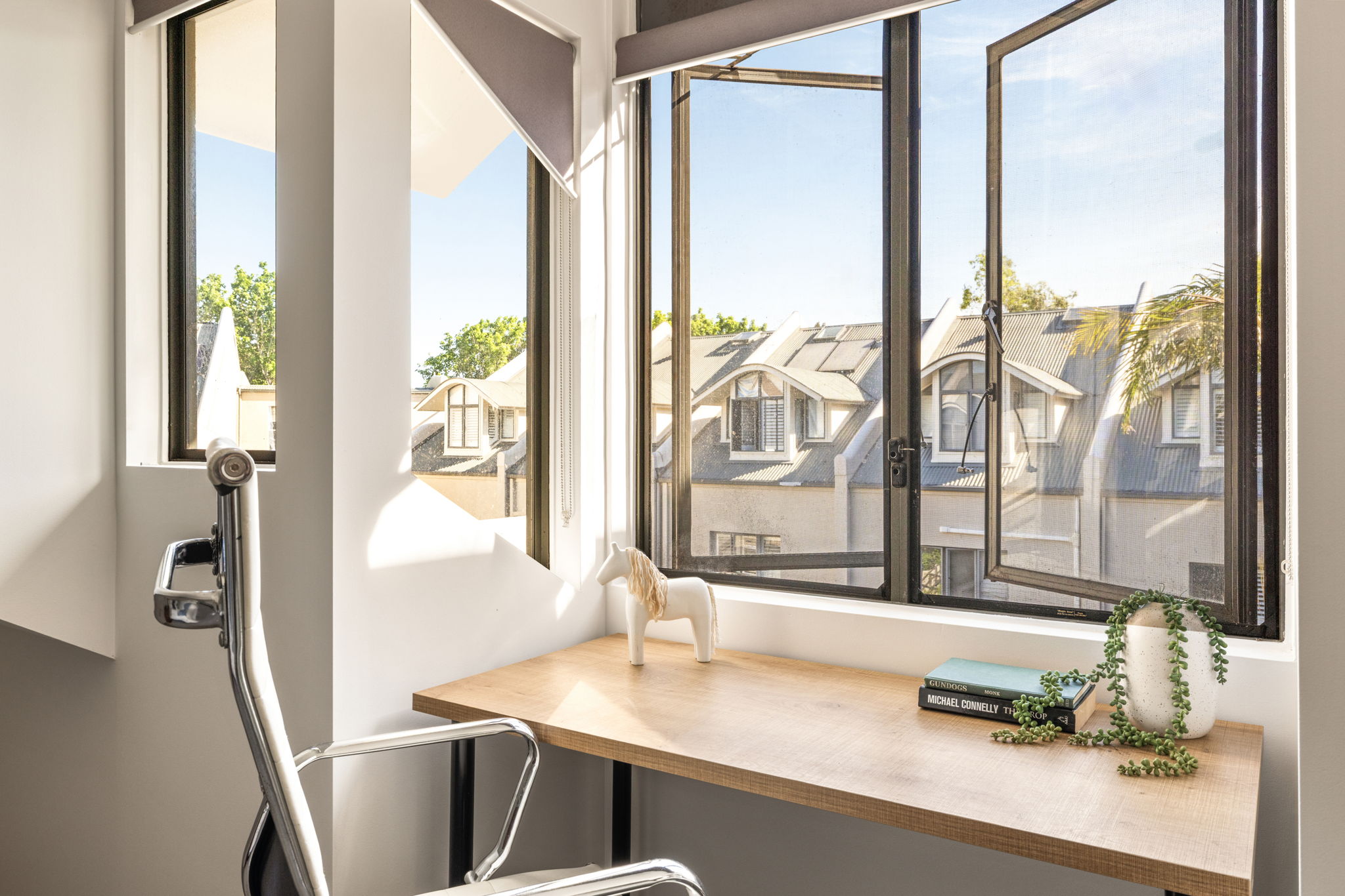 - Floor-to-ceiling glass, gorgeous leafy outlooks