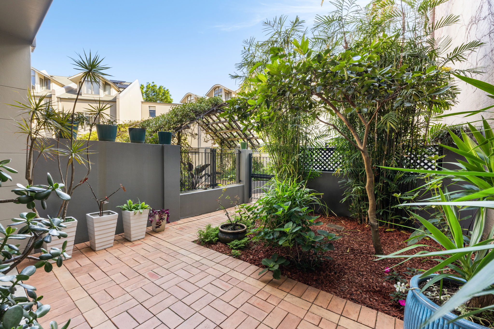 - Oversized north facing entertainers' courtyard