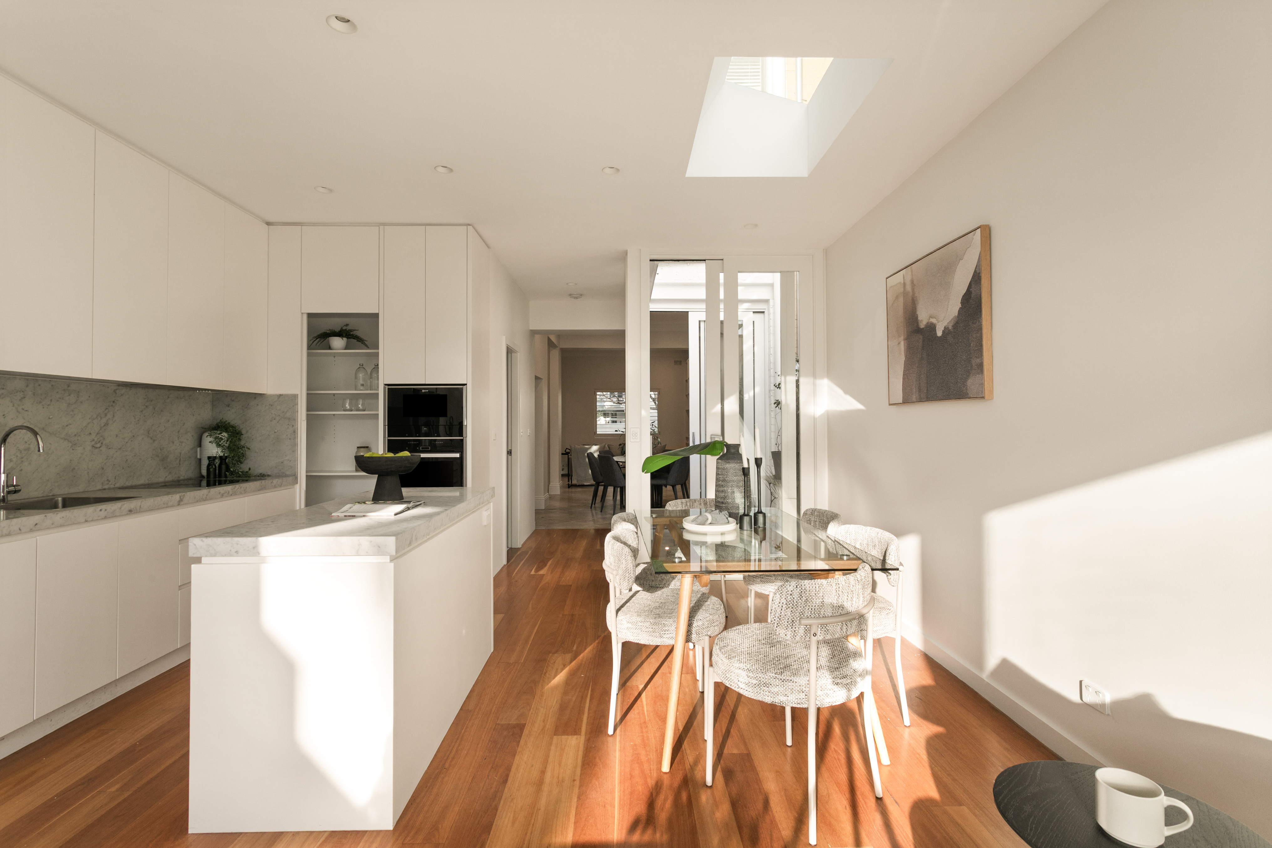 Nestled within one of Paddington's most coveted enclaves, this distinguished Victorian terrace presents an exceptional lifestyle of space, sophistication and effortless convenience. Showcasing grand proportions and an abundance of natural light, the residence reveals a masterful blend of timeless character and contemporary luxury, with both formal and informal living and dining zones designed for refined entertaining. Soaring ceilings, exquisite Travertine and timber flooring, and a striking array of skylights enhance the sense of scale and light throughout. At its heart, a statement marble island kitchen is appointed with premium European appliances, seamlessly connecting to a tranquil, sun-drenched courtyard framed by lush greenery-an idyllic setting for alfresco entertaining. Perfectly positioned for a walk-to-everywhere lifestyle, this exceptional home is mere footsteps from Oxford Street's vibrant retail and dining precinct, city transport and just 300 metres to Paddington Public School. Enjoy easy access to the gourmet delights of Five Ways, prestigious schools, Westfield Bondi Junction and the iconic shores of Bondi Beach.