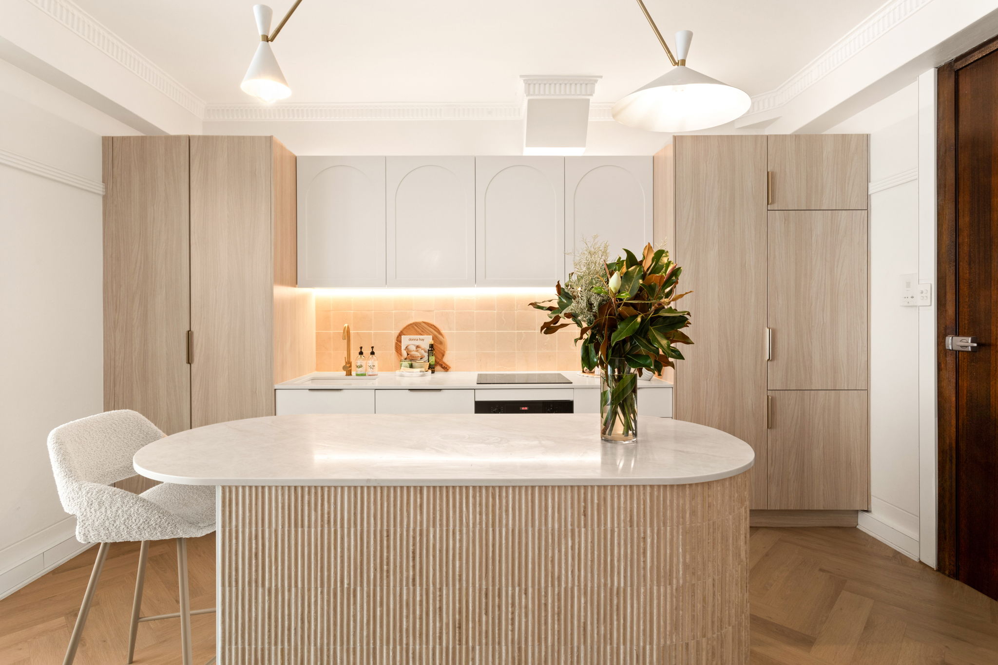 No expense has been spared in the transformation of this exquisite one-bedroom apartment combining contemporary luxury, style and sophistication in an exclusive Potts Point address. Renovated to exacting standards and finished to perfection, it reveals chic custom interiors combining accents of natural stone and marble complemented by high ceilings, Herringbone engineered oak flooring and abundant natural light. Its sizeable layout features a combined lounge and dining area, while chef's will delight in the gourmet Taj Mahal Quartzite kitchen with a Bosch induction cooktop plus an integrated fridge, freezer and dishwasher and a curved island benchtop as the centrepiece. Presenting an exceptional investment or pied-a-terre, it is located in the charming c1932 Art Deco building `Sandringham', with dual access onto the cosmopolitan shopping and dining scene of Llankelly Place, while within a stroll of Macleay Street's wine bars, boutiques and celebrated eateries, Kings X Station and within walking distance of Woolloomooloo and gorgeous harbourside parks.