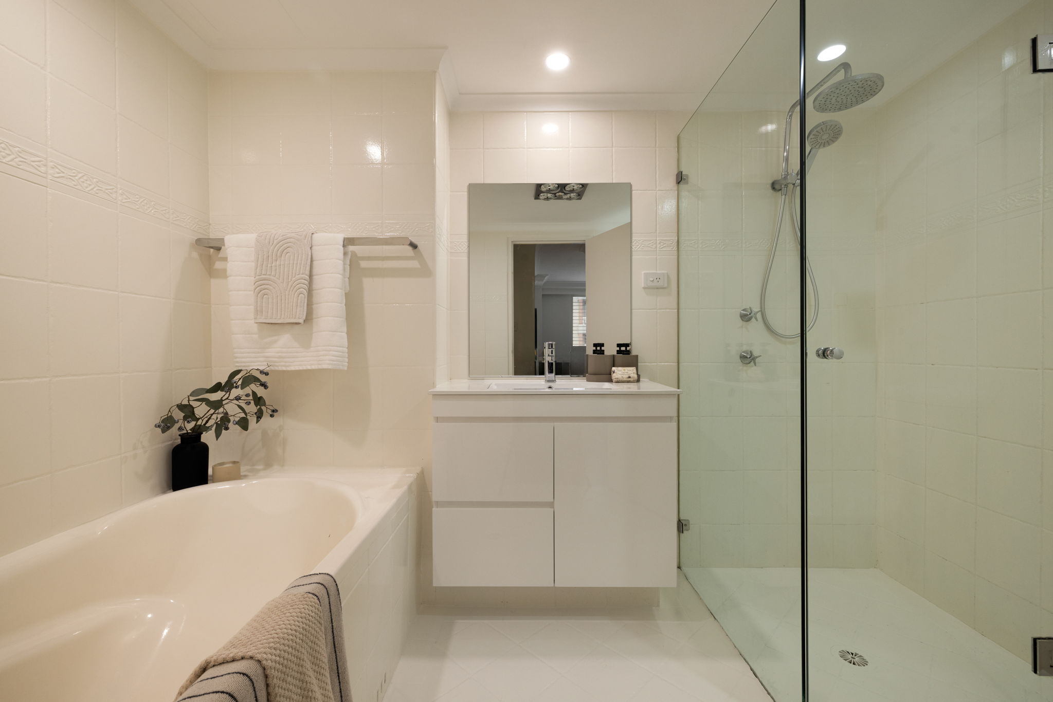 Wonderfully spacious and exuding a fresh and airy feel, it features stylishly appointed interiors with a well-balanced layout designed for relaxed modern living. A neat and tidy kitchen is equipped with stainless-steel gas appliances, while designated living and dining areas extend to a sun bathed balcony overlooking the complex village green. Accommodation comprises two well-scaled bedrooms, both of which are appointed with mirrored built-in wardrobes and the master features a full-sized ensuite. Further highlights include a fully-tiled main bathroom, a separate internal laundry split-cycle air conditioning for year-round comfort and easy access to secure parking with a double lock-up garage.
