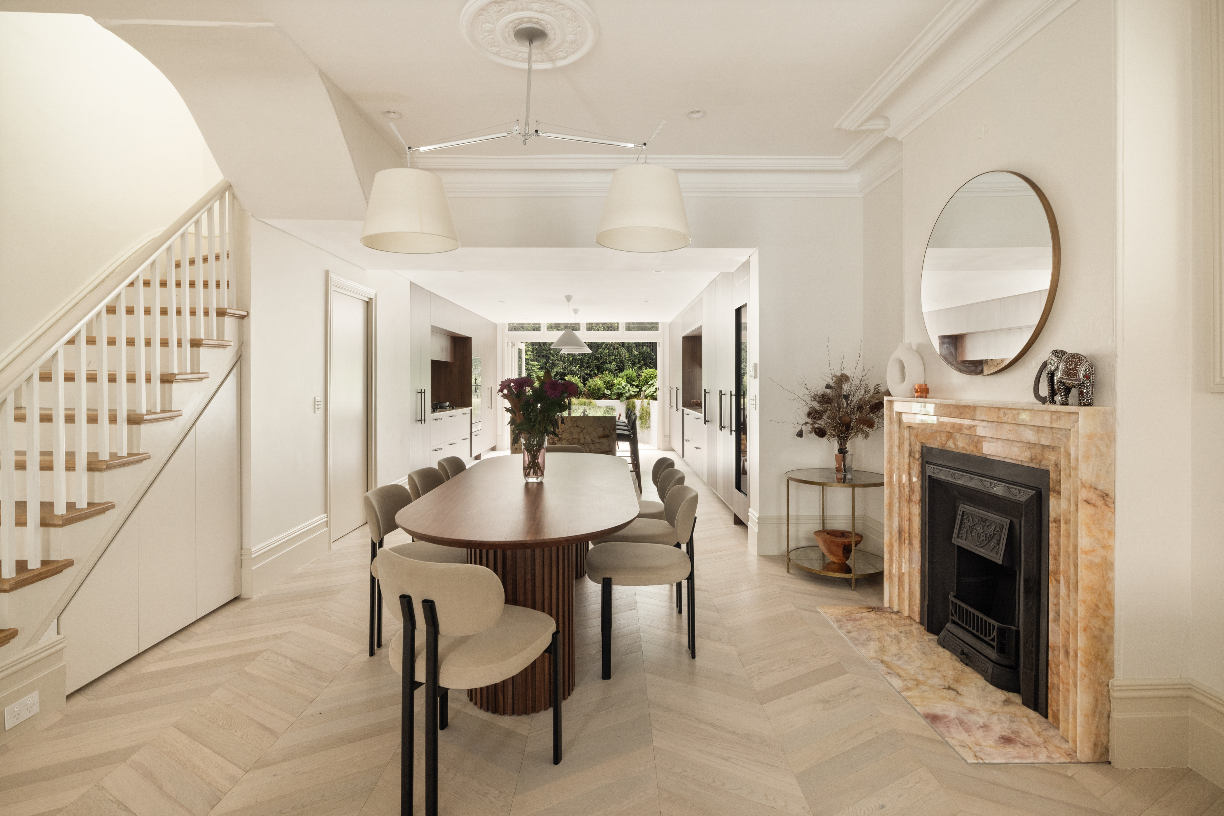 There's an undeniable sense of glamour to this masterfully reimagined terrace, where every element has been meticulously sourced and thoughtfully composed to create a home of rare distinction. It reveals a bold yet refined aesthetic combining accents of honed marble and natural stone complemented by striking Chevron oak floors and extensive custom joinery throughout. An impressive layout features open plan lounge and dining areas with twin statement fireplaces, while a showpiece dream kitchen features a stunning vast island benchtop and state-of-the-art European gas appliances. Accommodation comprises four generous upper-level bedrooms, two with chic ensuites plus there is a full-sized main bathroom. Further highlights include ducted air conditioning, an internal laundry and guest powder room, while to the rear is a north facing sunny courtyard, perfect for entertaining and framed by lush greenery. It is exceptionally located in one of Surry Hills most sought-after community-oriented pockets, within a stroll of the vibrant café culture of Bourke Street and within easy reach of acclaimed wine bars, pubs and top-tier eateries, while the light rail, city buses and Surry Hills Village are all just minutes away.