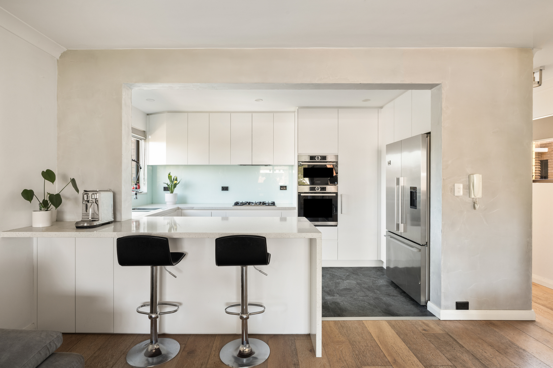- Bosch oven & integrated microwave, gas cooktop