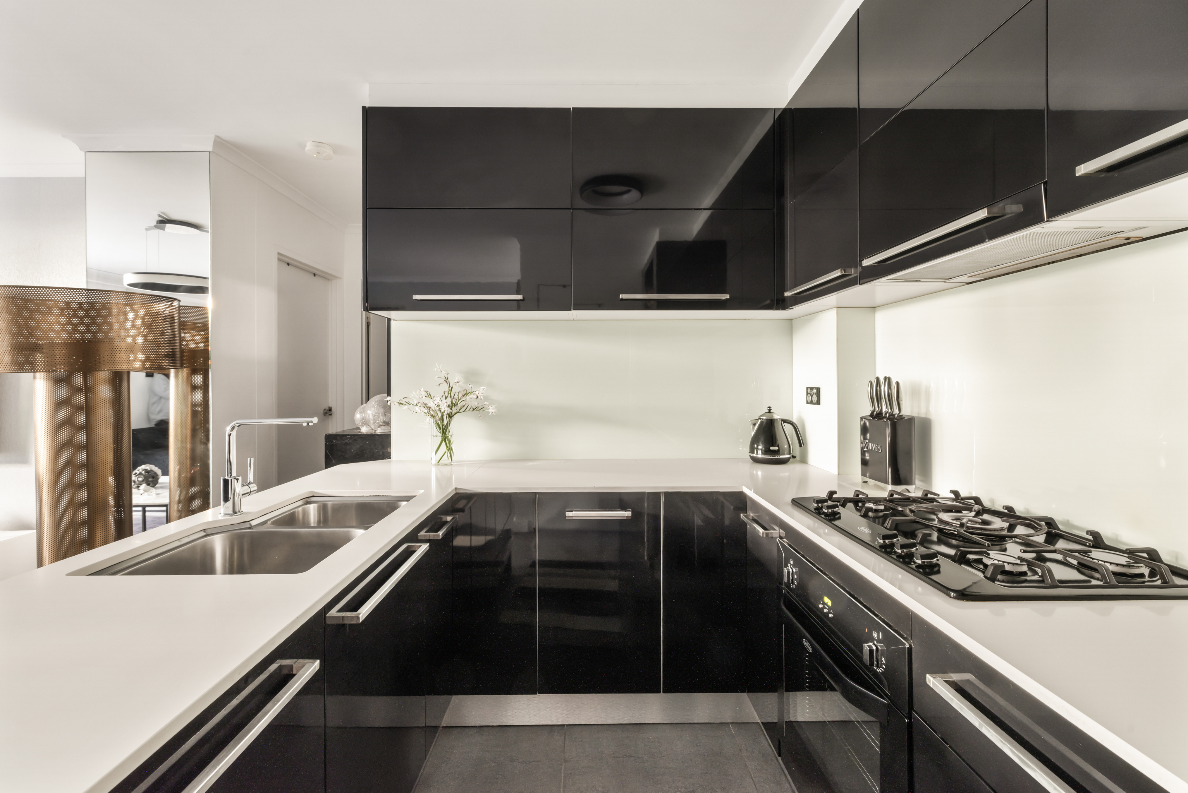 - Sleek gas stovetop & integrated dishwasher