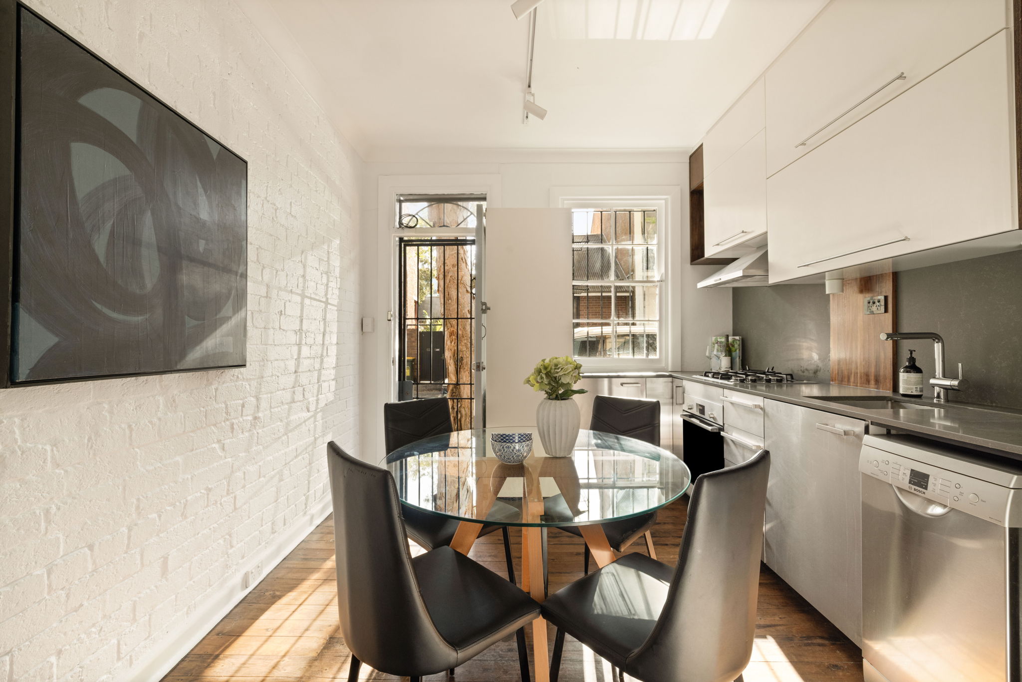 Stylishly renovated for modern comfort while exuding its original period charm, this warm and welcoming terrace delivers a sleek urban sanctuary of outstanding lifestyle appeal in a sought-after Surry Hills pocket. It reveals a classic free-flowing layout with a streamlined eat-in kitchen with stone benchtops and stainless-steel gas appliances, while a separate skylit living area extends to a north east facing landscaped courtgarden bathed in sunshine. Polished timber floors, high ceilings and exposed brick walls are showcased throughout, while the upper-level features two well-sized bedrooms, both with reverse cycle air conditioning and the front room features French doors opening to a sunny balcony. Set on a quiet street within a vibrant urban pocket, it is positioned just one block back from Crown Street's buzzing hub, with hip bars and top eateries, shops, boutiques and Harmony Park, while surrounded by popular neighbourhood cafés, pocket parks and lively pubs. It is just 550 metres to Central Station and boasts rapid access to the CBD.
