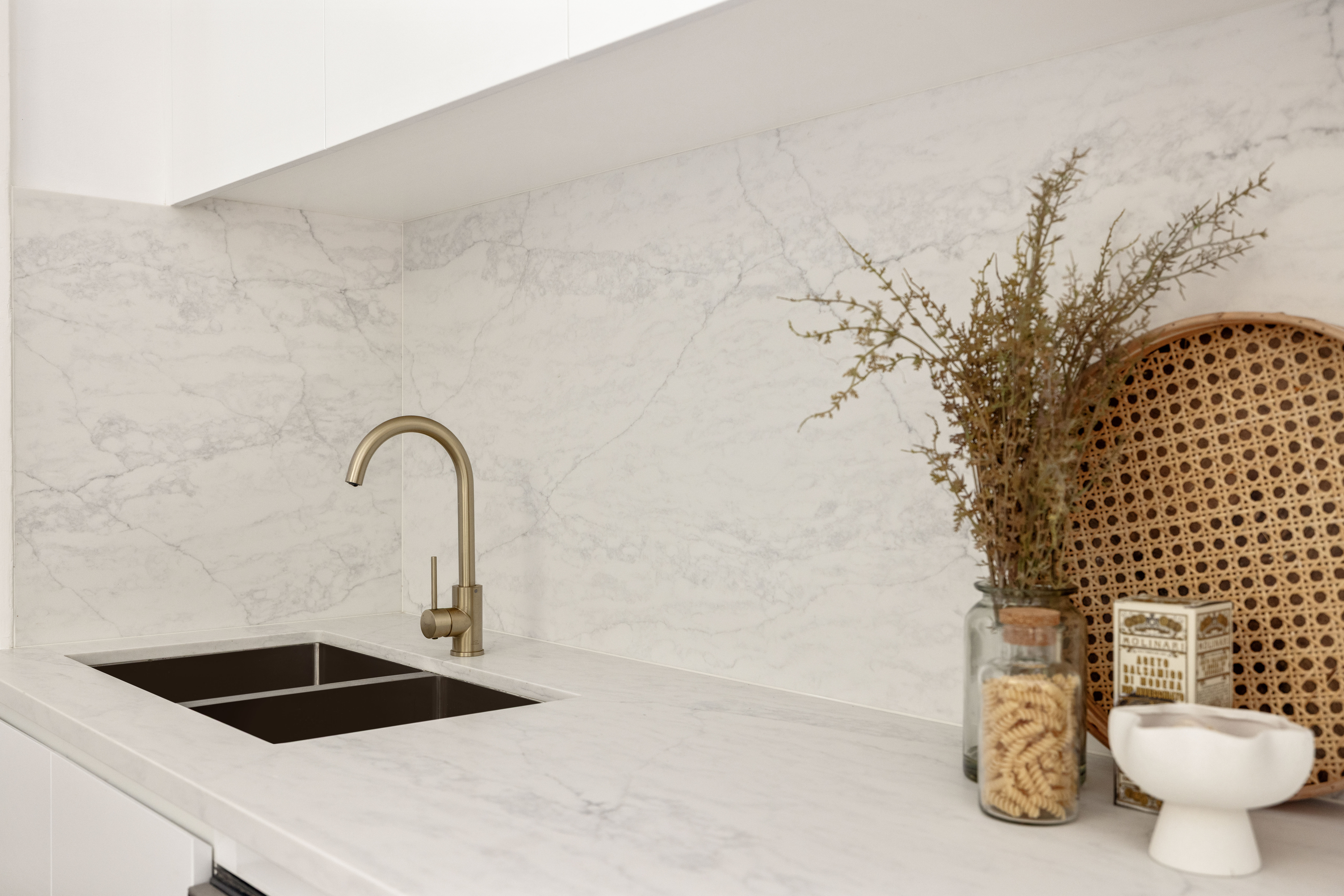- Streamlined kitchen with stone benchtops, European appliances, and large pantry