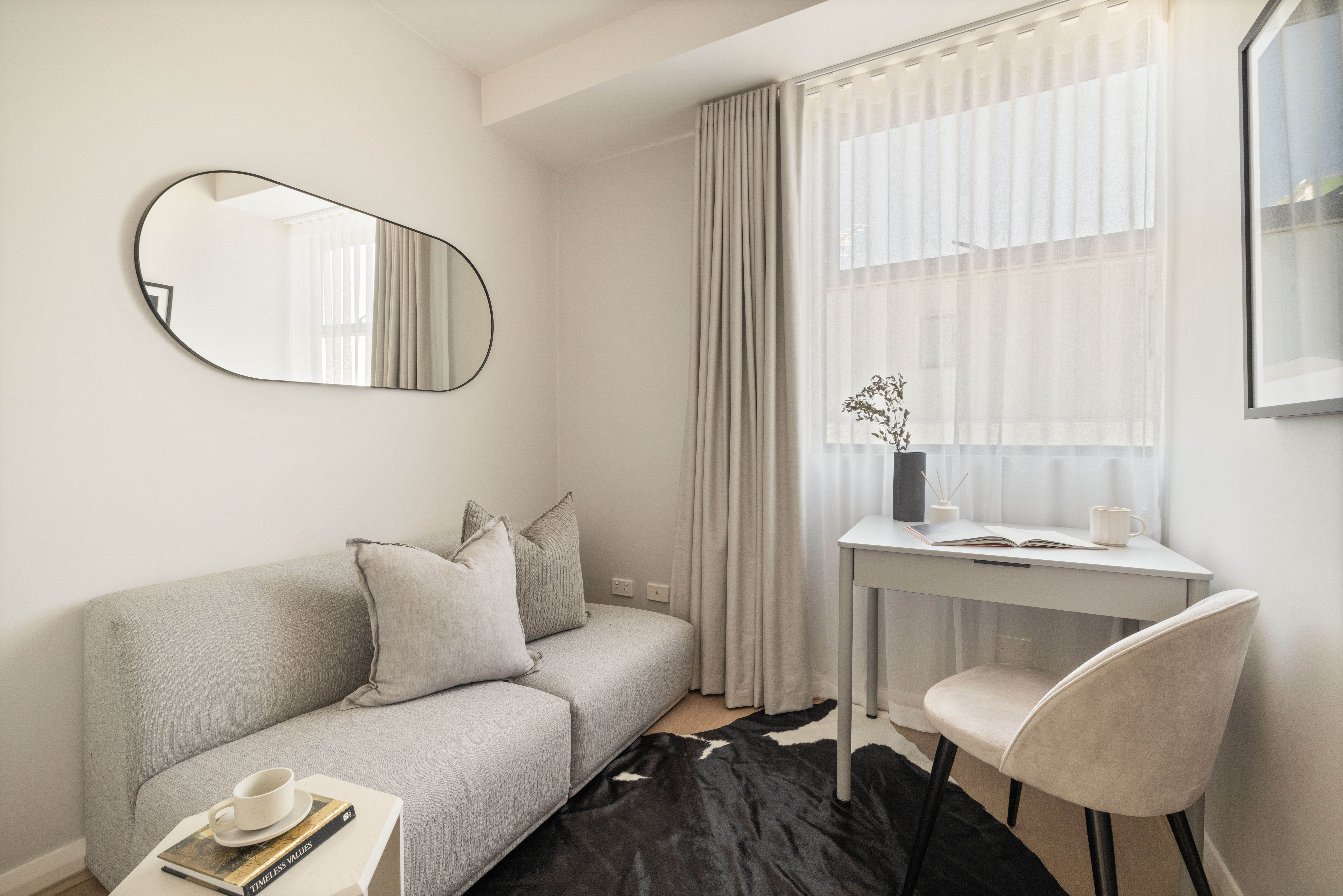 Demonstrating an excellent display of contemporary design and maximisation of volume, this brilliant dual-level apartment promises a premium urban lifestyle. The intelligent floorplan provides remarkably generous proportions for a one-bedroom apartment, with a wide open-plan living and dining area, two north-facing outdoor spaces and a separate dedicated home office. Set on the top floor of the SJB designed 'Artise', it provides access to a glimmering lap pool, a gymnasium and landscaped gardens, while enjoying all the conveniences of a lifestyle in the heart of Rosebery.