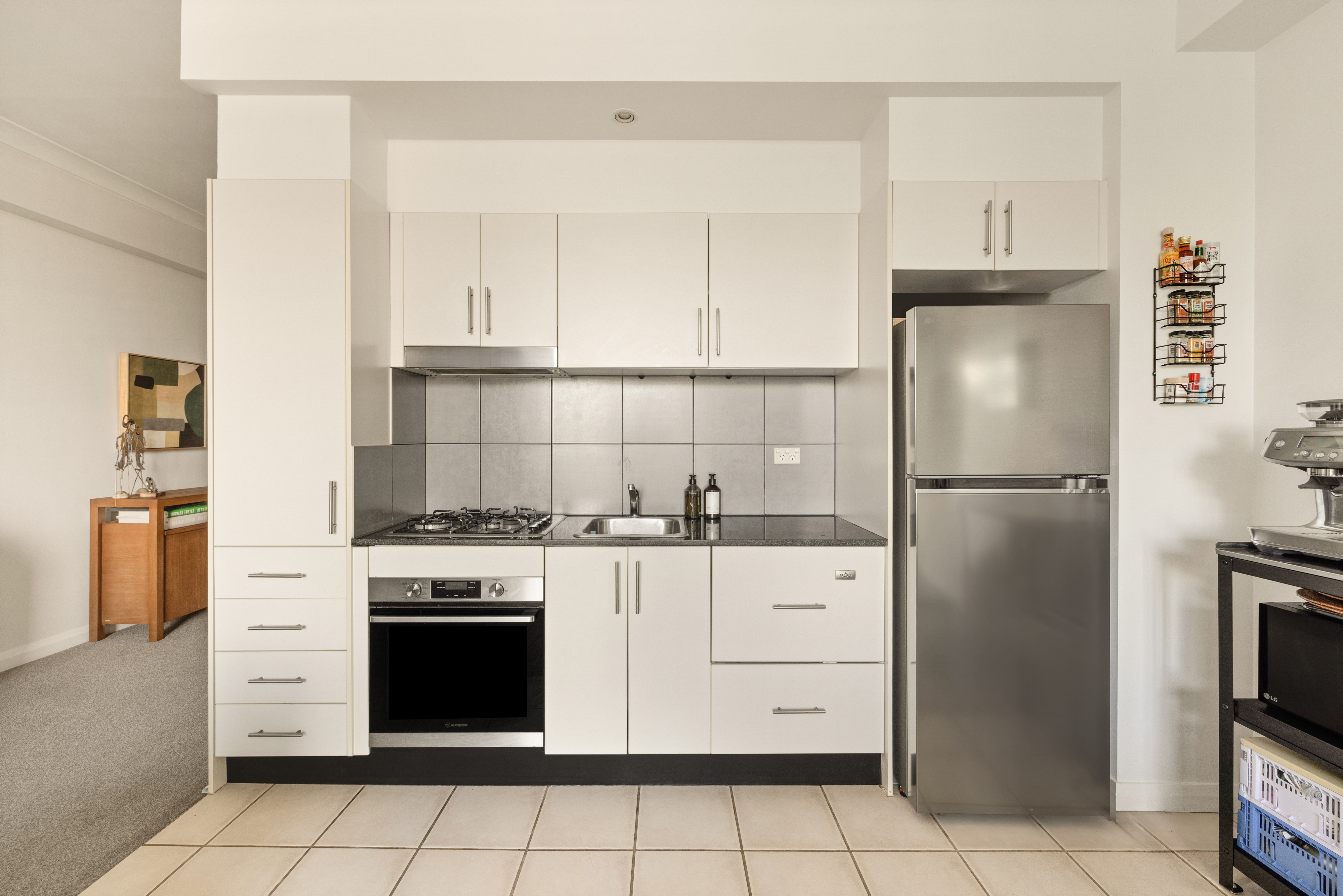 - Streamlined gas kitchen with ample storage