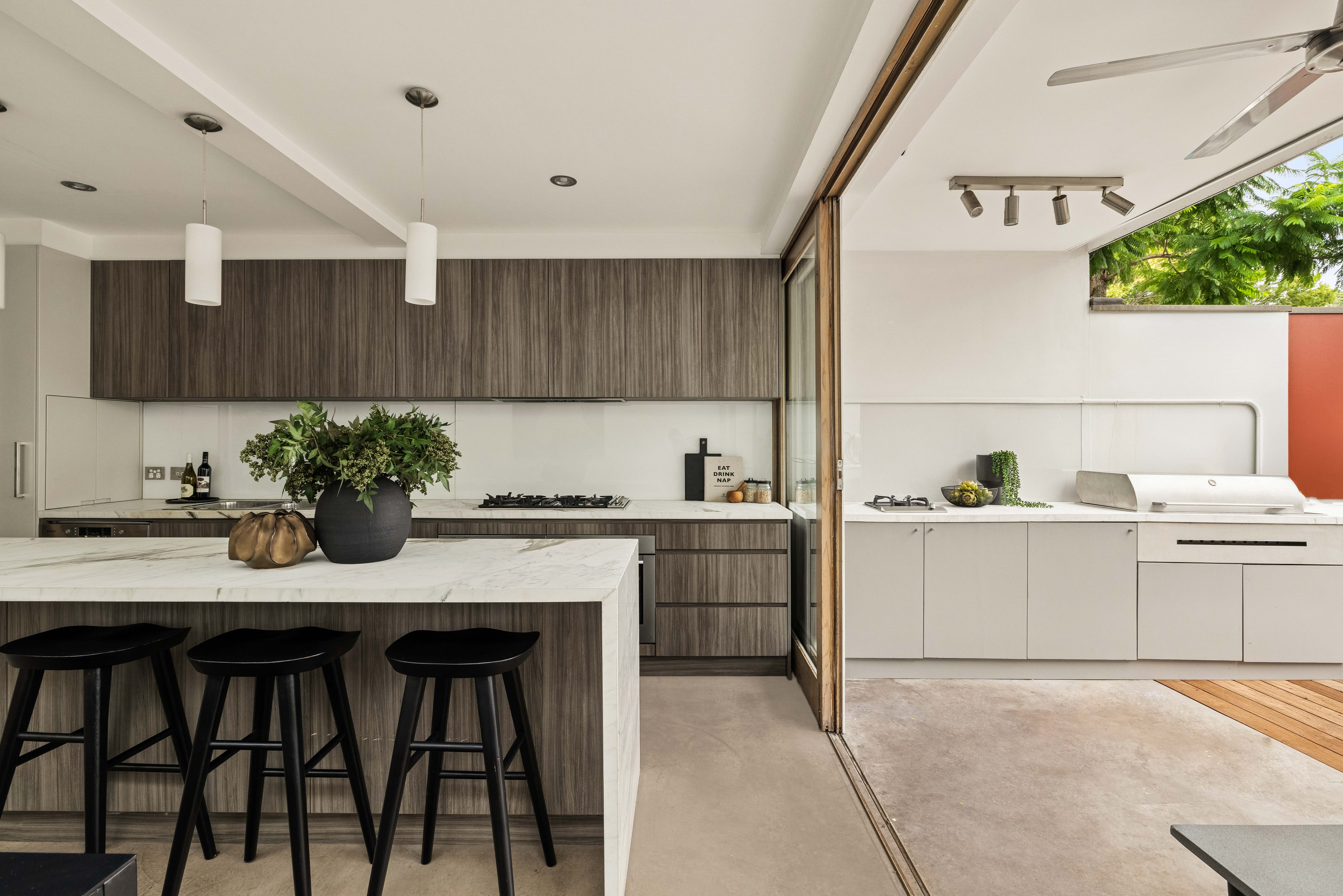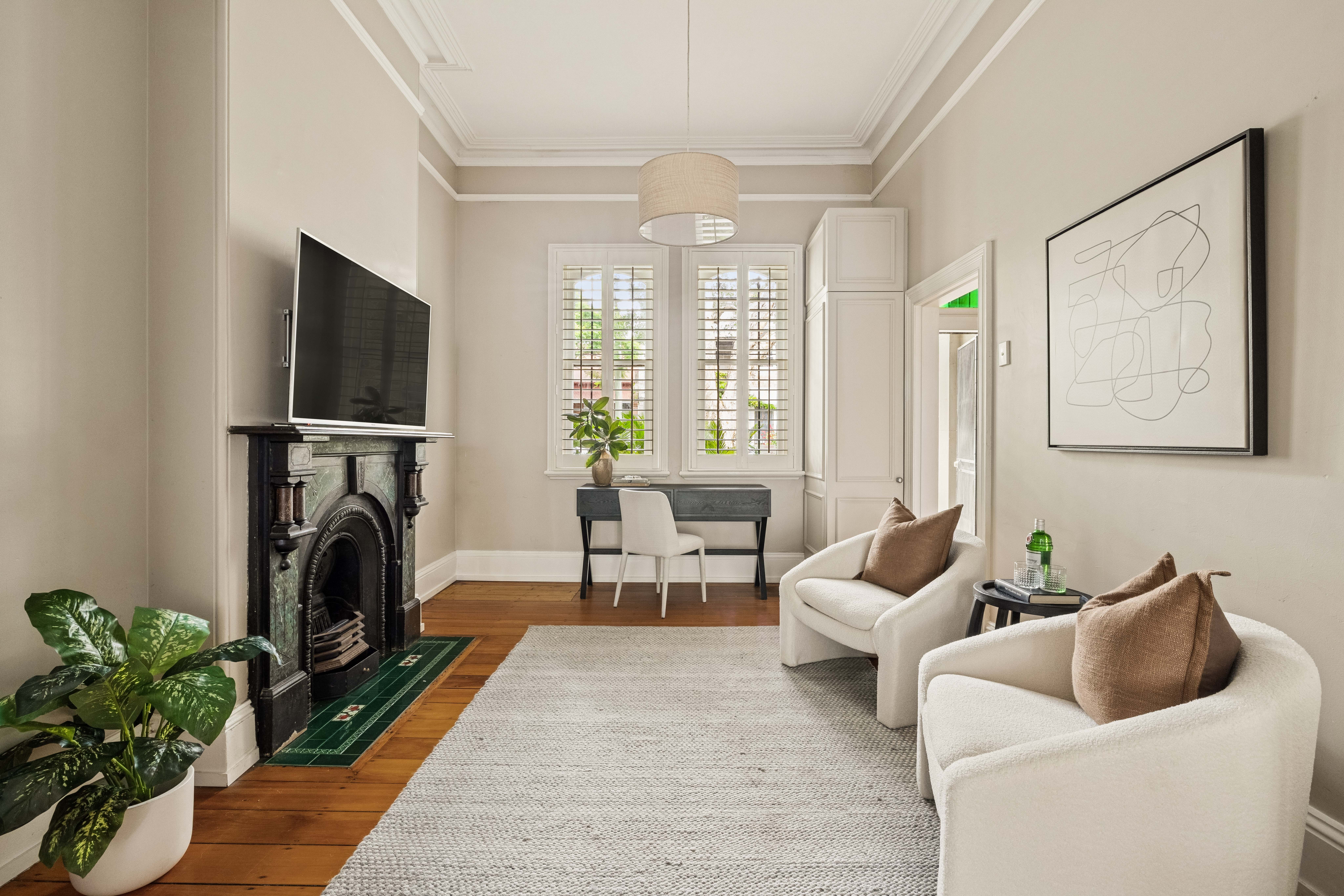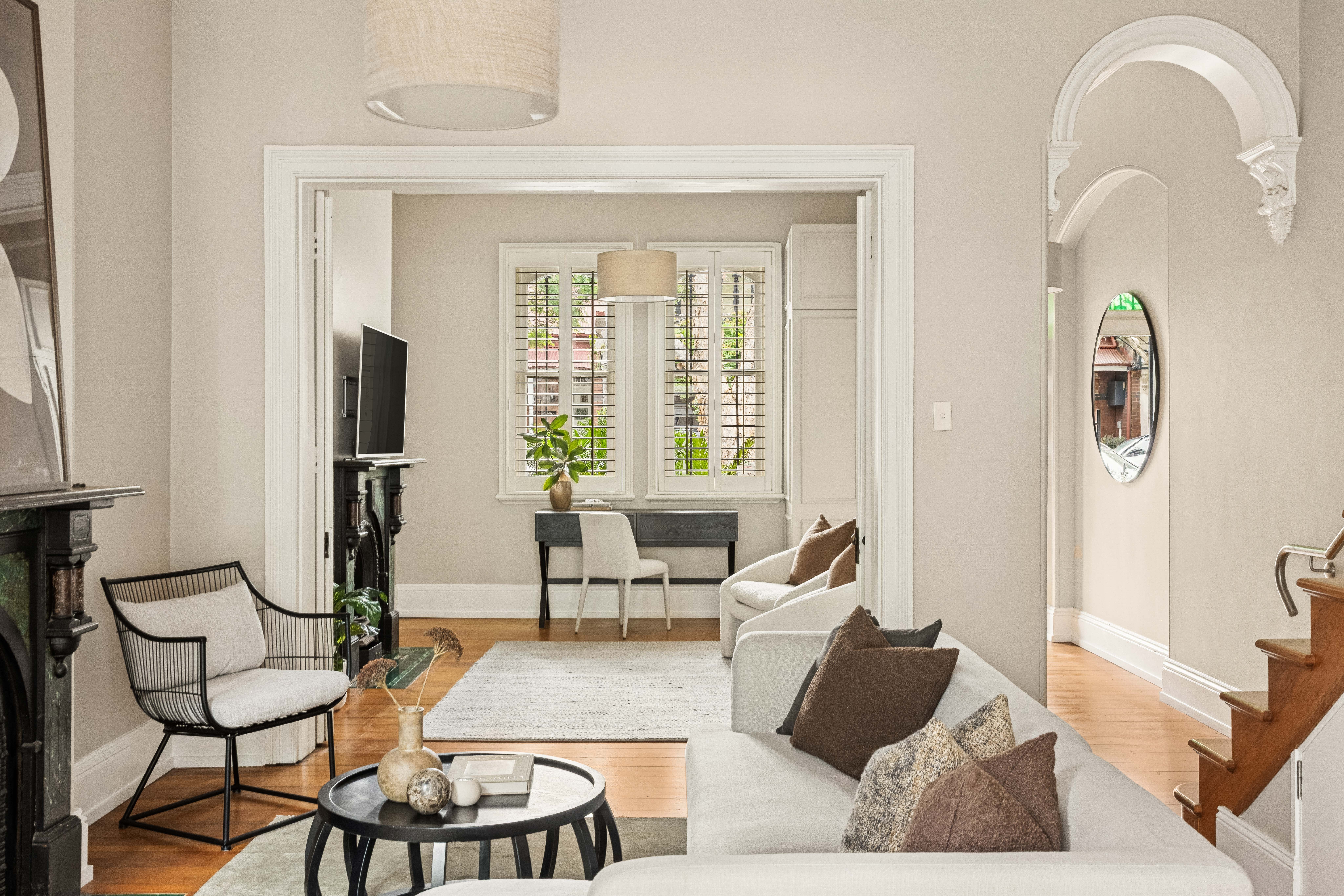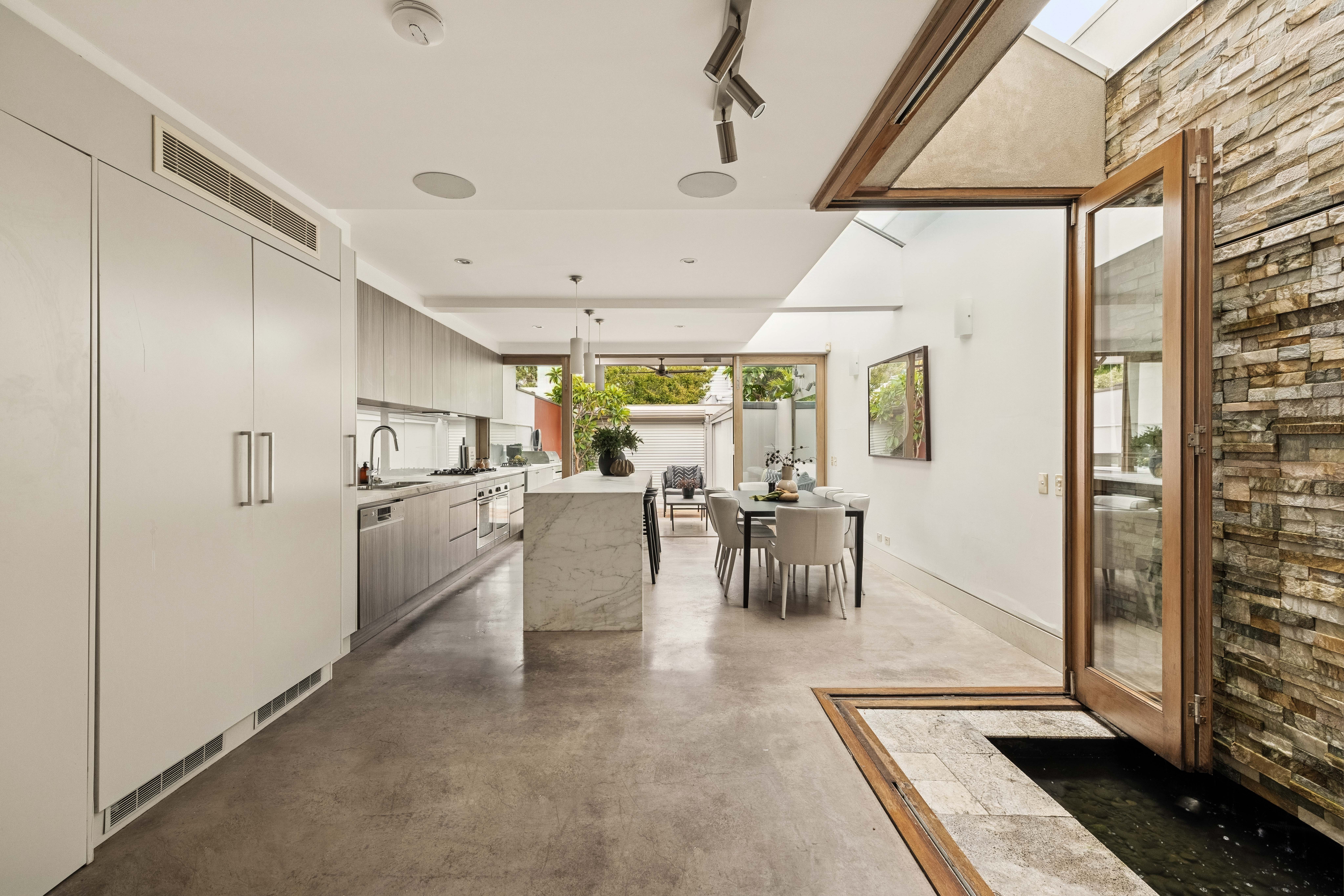 Perfectly positioned within a family-oriented pocket of Alexandria, this tri-level four-bedroom terrace delivers a refined sense of scale and elegance, pairing beautifully preserved period character with a sleek contemporary renovation. From the first impression, the home speaks to timeless quality, creating an immediate feeling on arrival that is both graceful and enduring. The traditional front of the residence unfolds through formal lounge and dining rooms, while beyond, the home transitions into a beautifully transformed rear living zone flowing effortlessly to superb alfresco entertaining. A gourmet chef's kitchen features Arabescato benchtops with an expansive island and premium Euro gas appliances, while a tranquil central atrium with a koi fish pond and water feature brings a sense of calm and natural beauty. Complete with convenient rear lane access to secure parking, it boasts a tightly-held address offering everyday convenience and a genuine neighbourhood feel. You're within footsteps of the green expanse of Alexandria Park, Alexandria Park Community School and popular local cafés, while Waterloo Metro, Redfern Station and Fountain Street with Woolworths and a myriad of eateries are all just a stroll away.