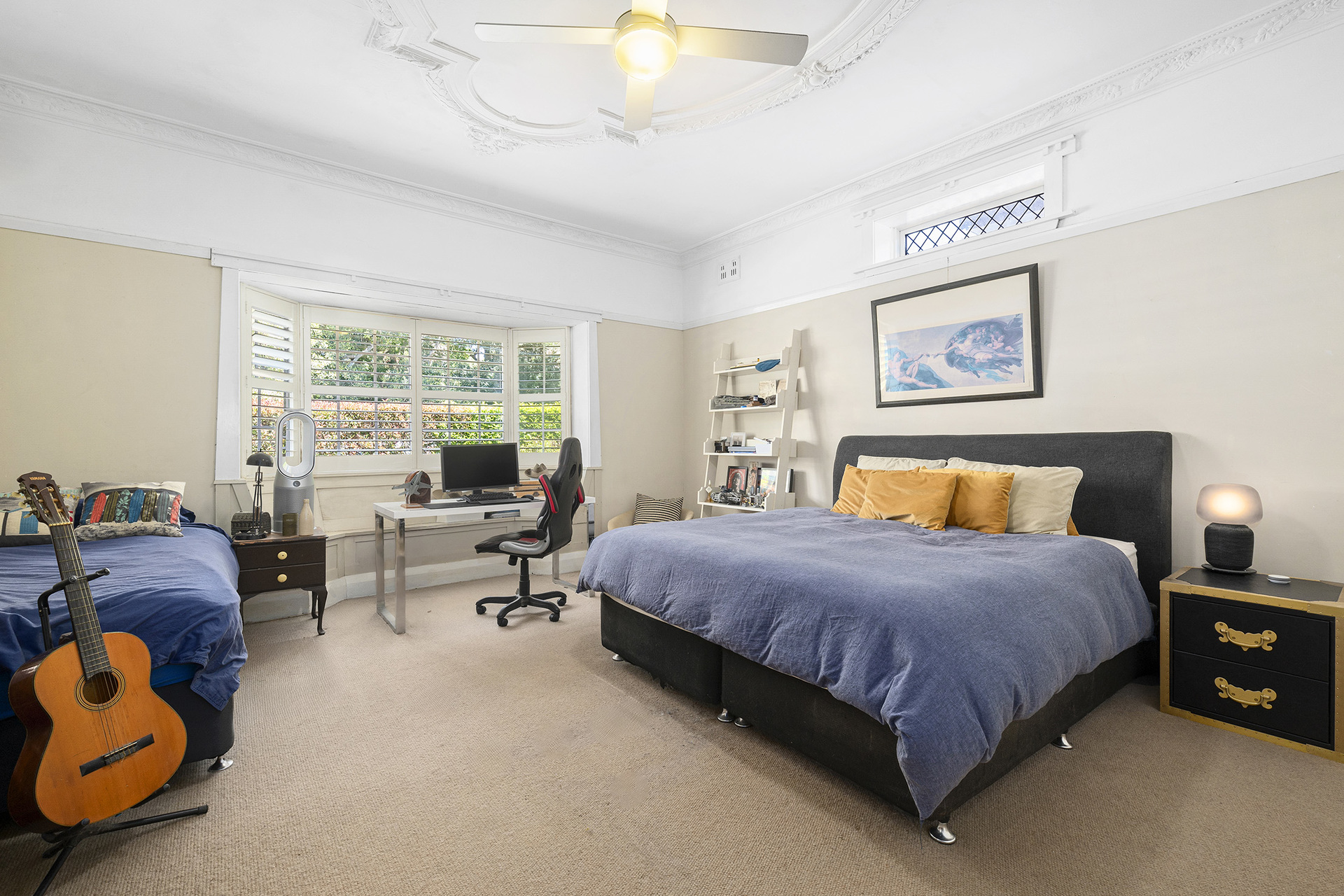 - Huge master bedroom with a bay window seat and built-in robe