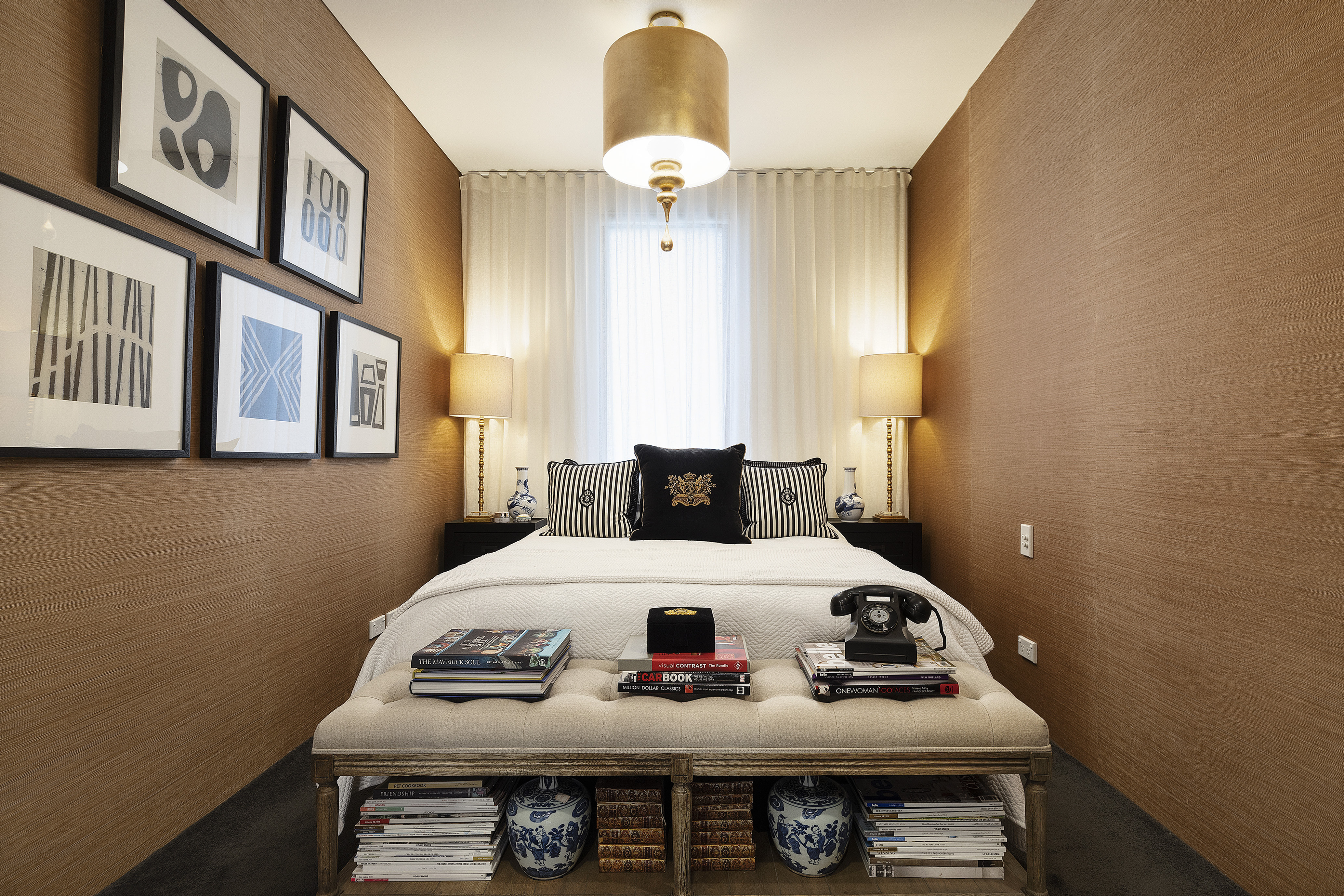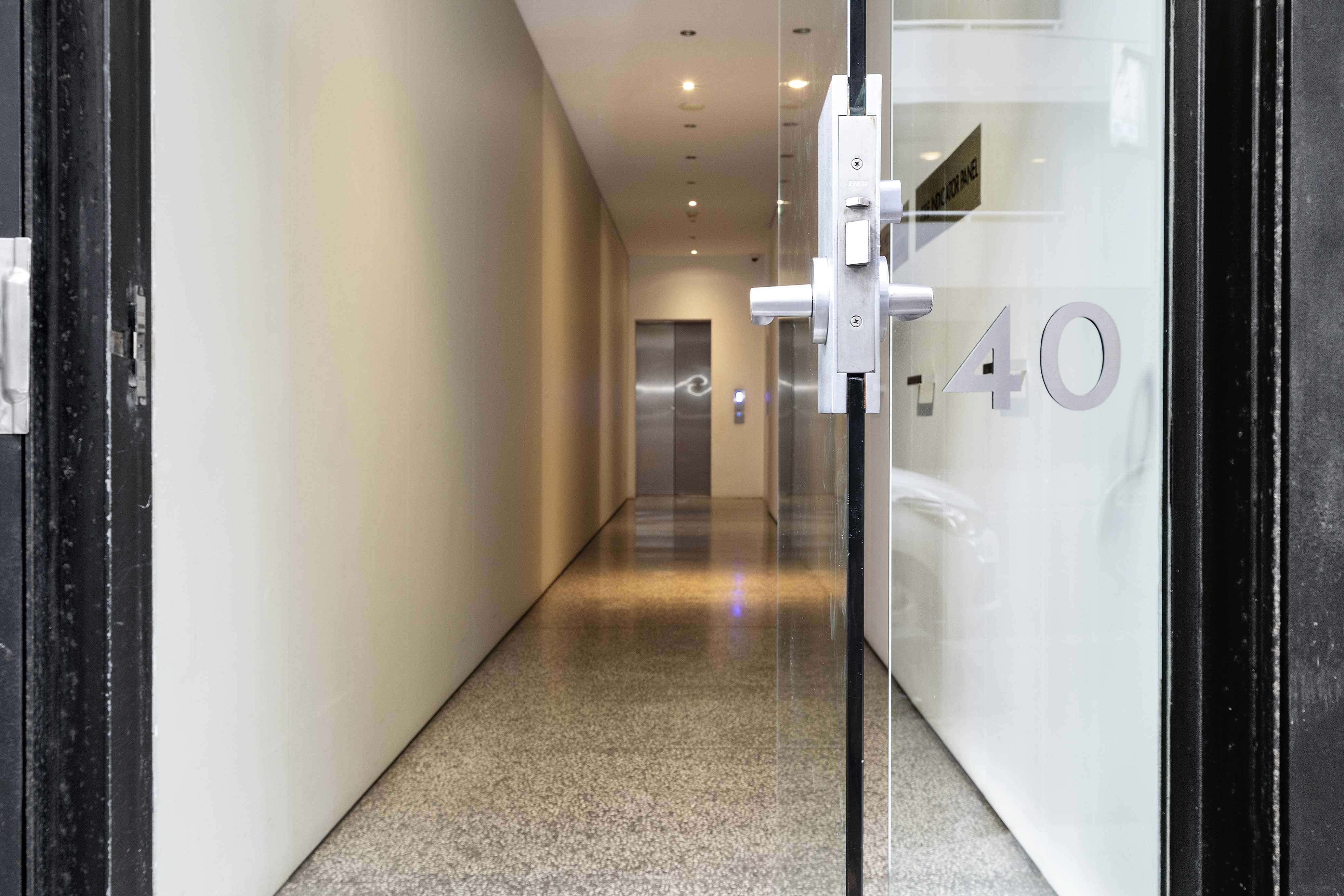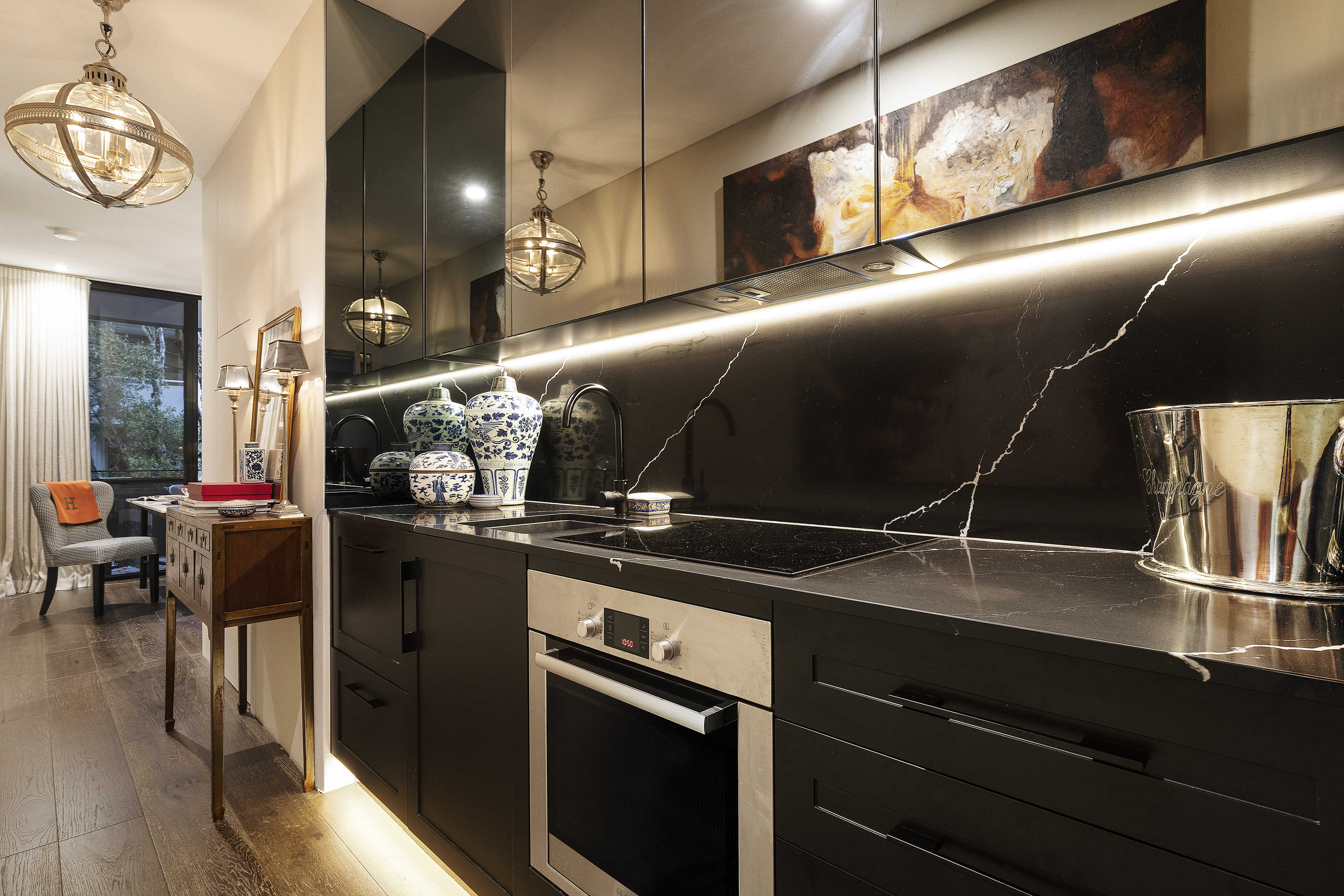 - Custom back-lit cabinetry, 2.6m-high ceilings, air-cond