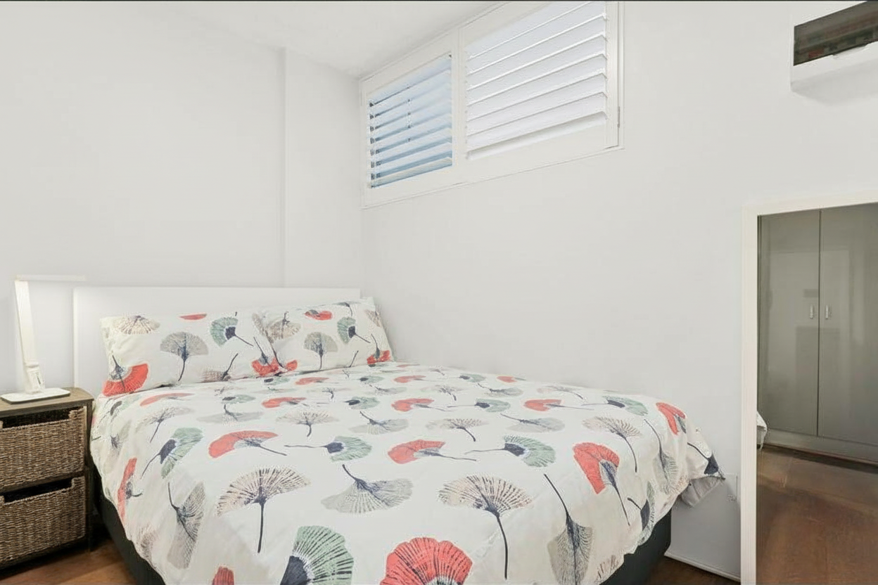 - Separate bedroom with plantation shutters for privacy