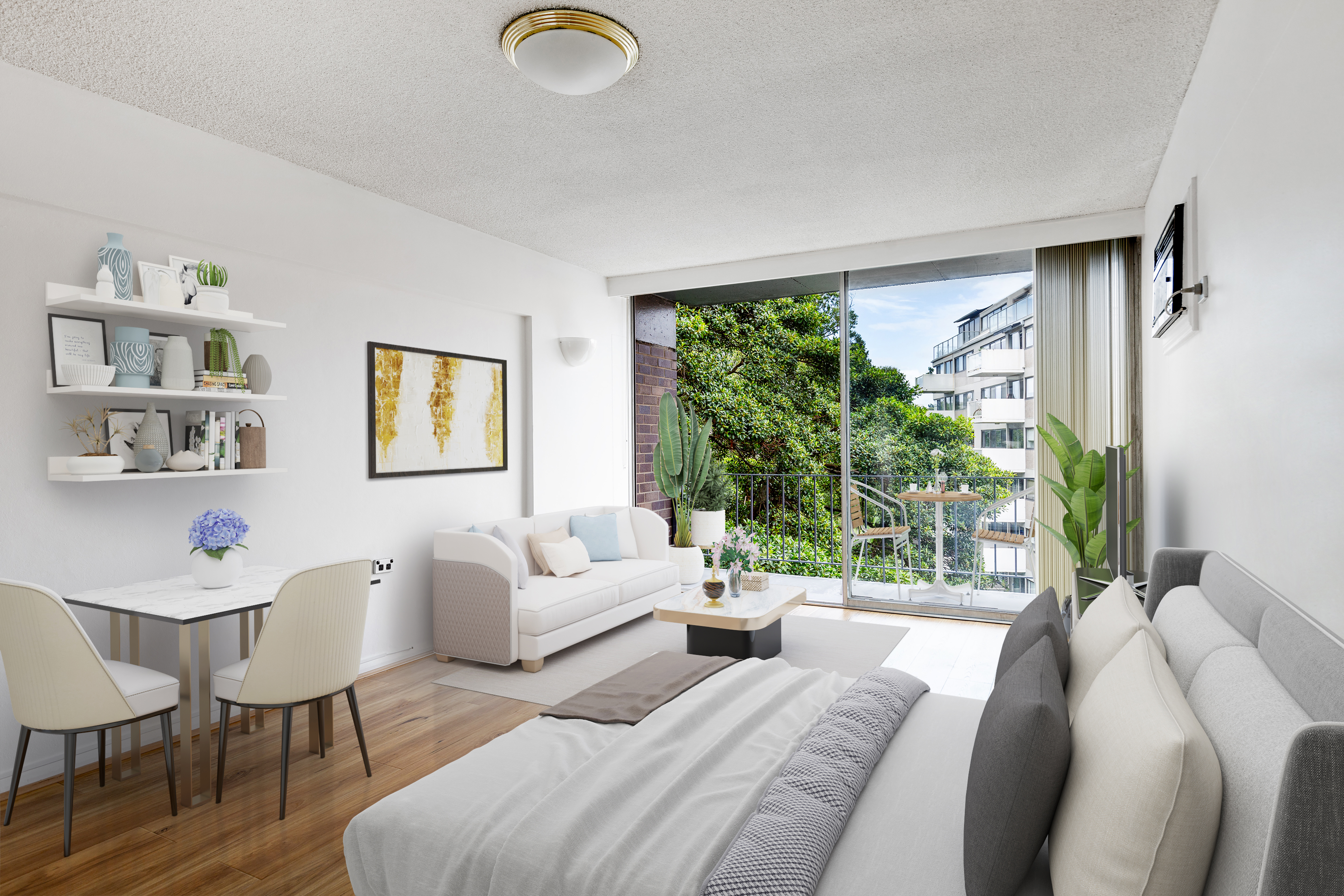 The studio offers with a walk-to-everywhere lifestyle with popular Shuk café across the road, a short stroll to the harbour foreshore, Rushcutters Bay tennis courts, Cruising Yacht Club and minutes to buses, King Cross train station and Potts Point village.