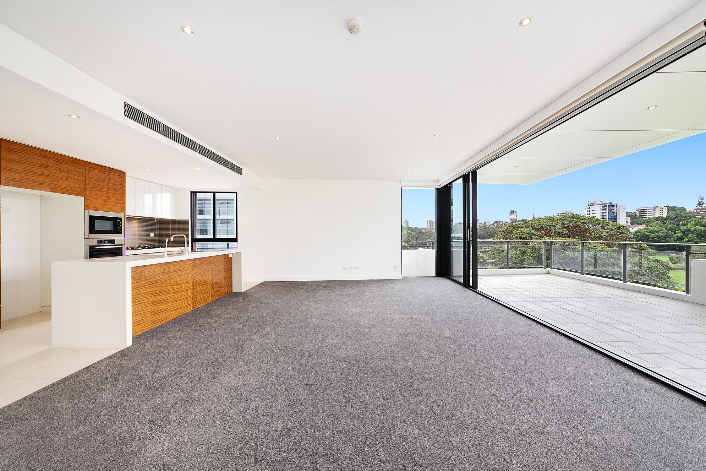 Enormous full width deck with lush green views over parks + Paddington