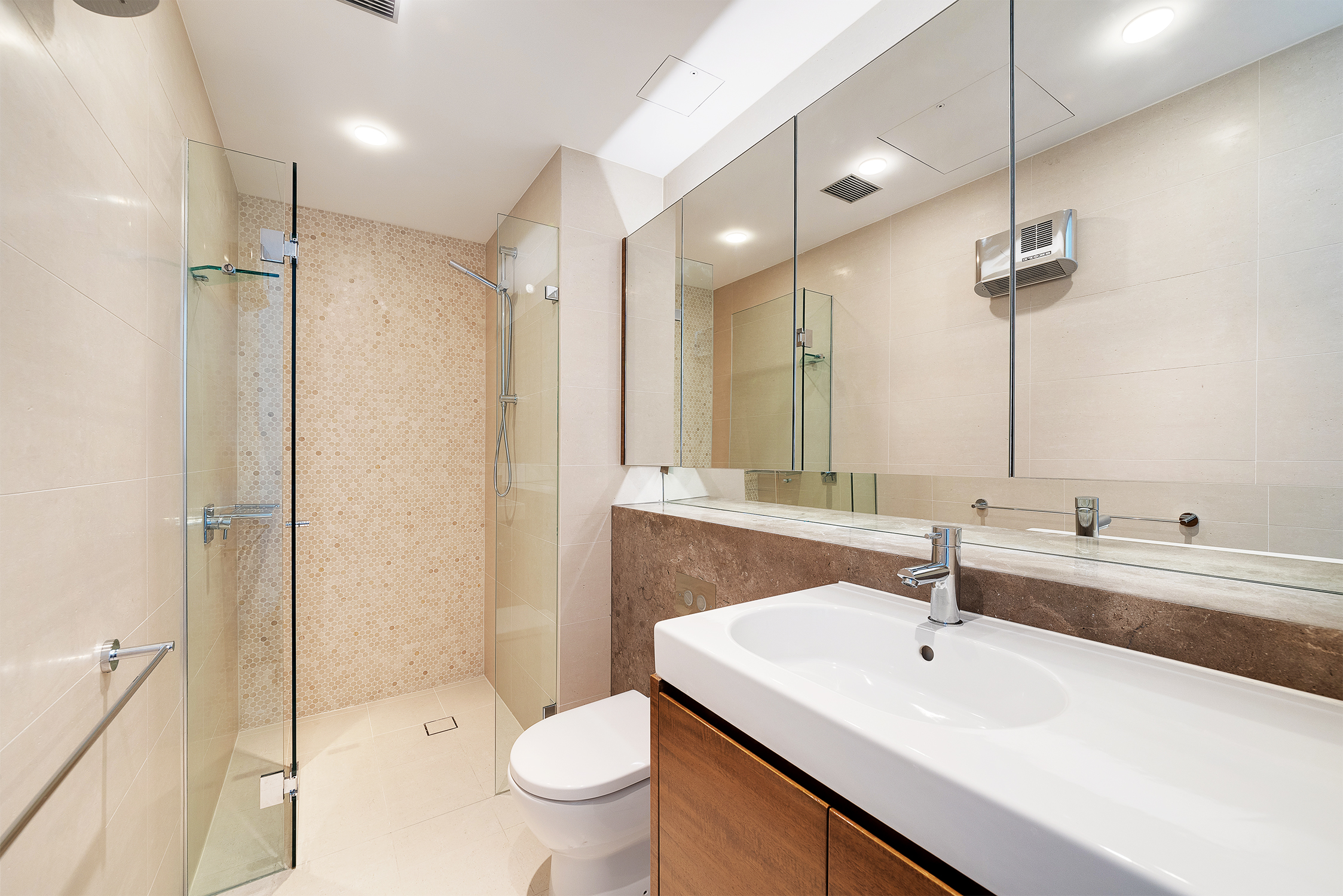 East facing corner position, glass embraced living + internal skylight