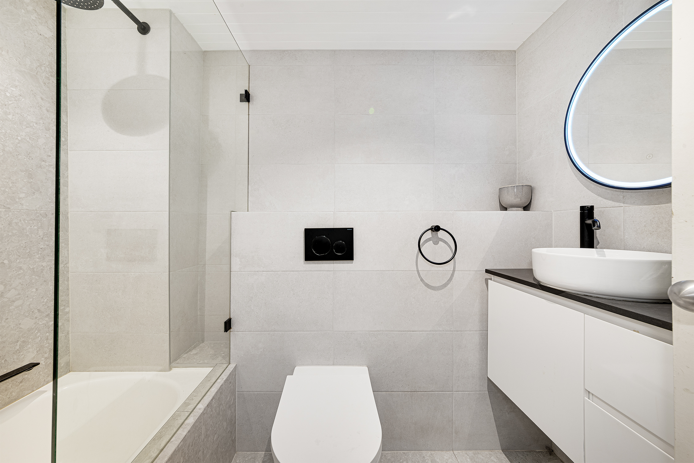 - Designer bathroom with bath, separate internal laundry