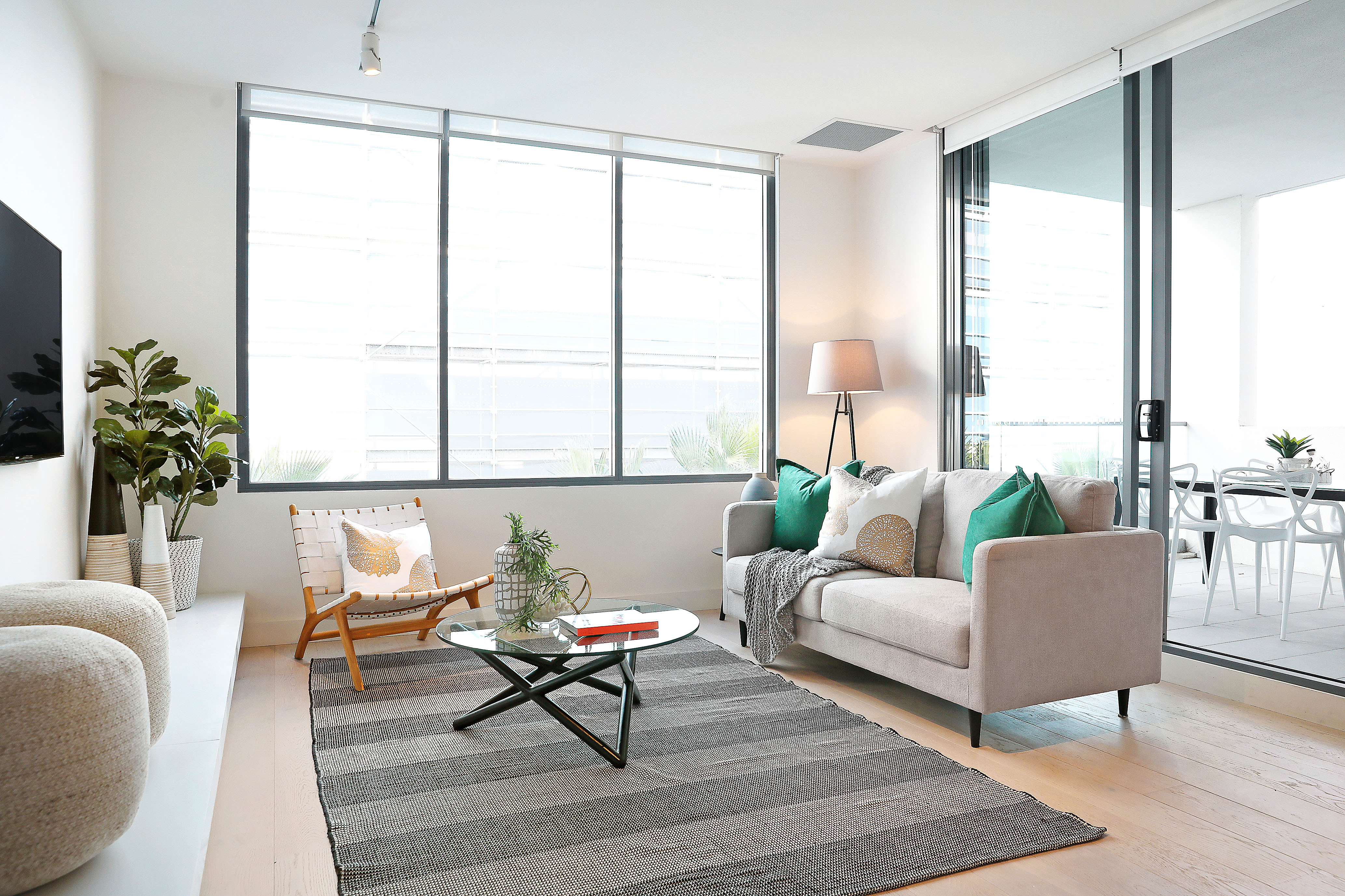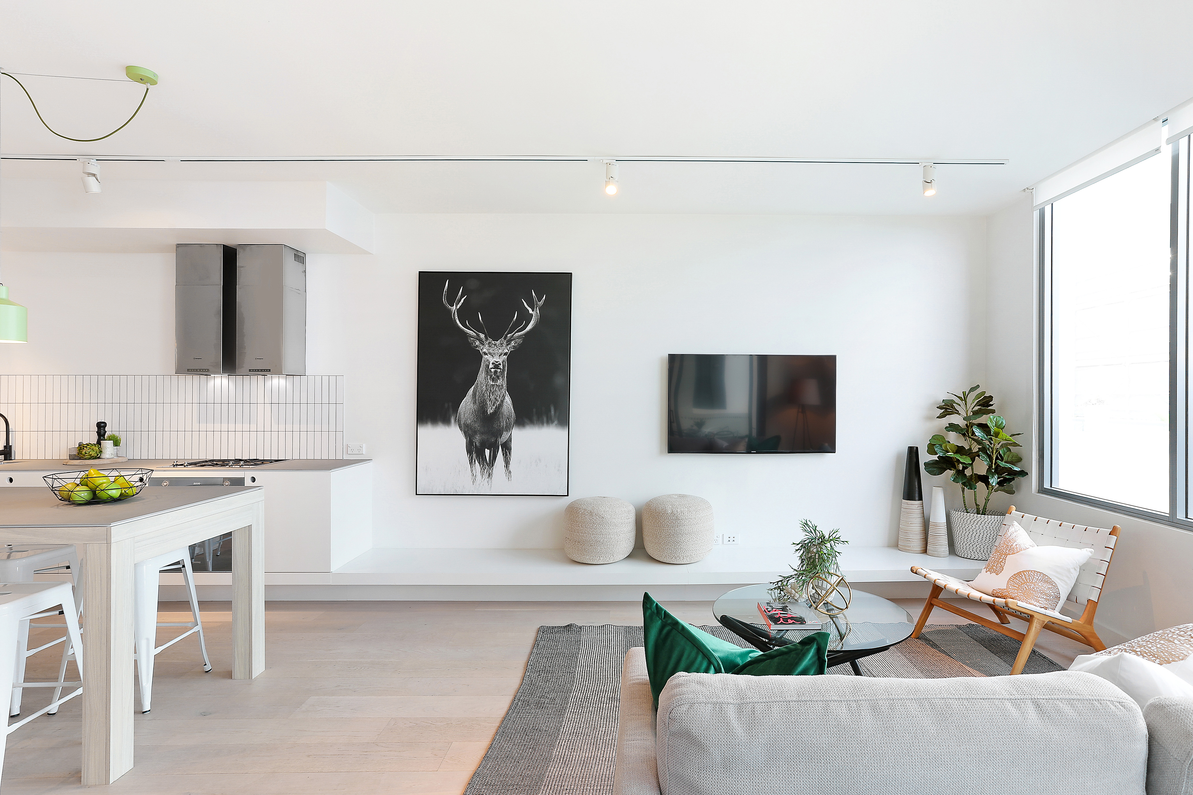 - Sleek design with zoned living/dining bathed in natural light
